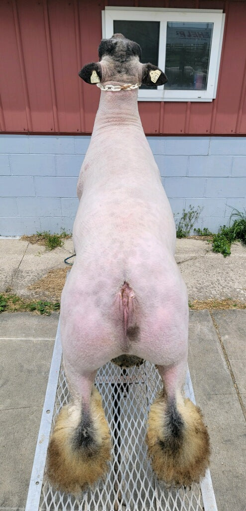 He's a super shallow round ribbed ram with alot of bone and shag, a real freak when he was a baby.