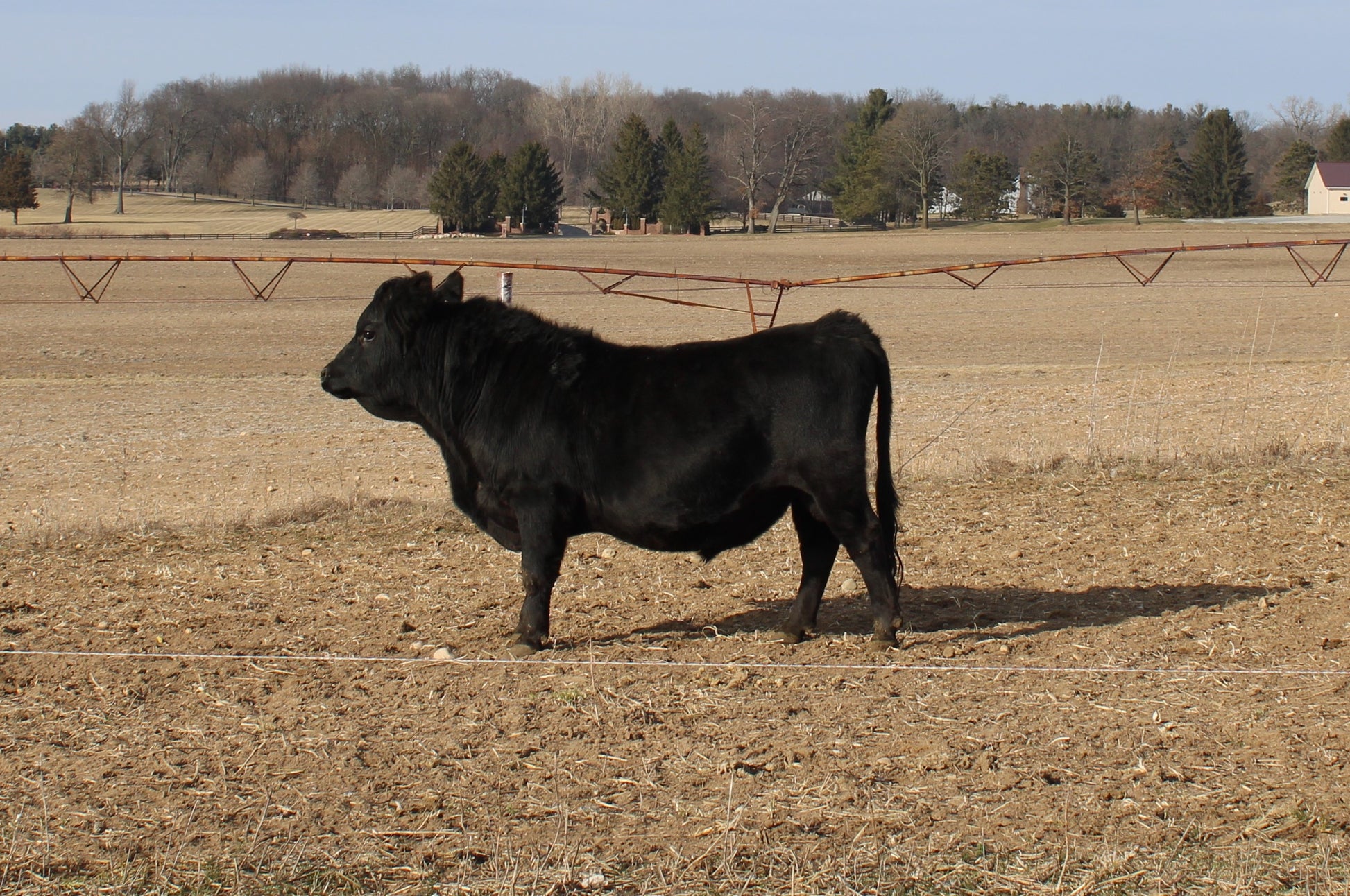 Banjo is a chocolate Miniature Jersey with a 41" hip height. He is very calm & easy going. Likely getting that trait from his dam as she is good mannered and milks very well!