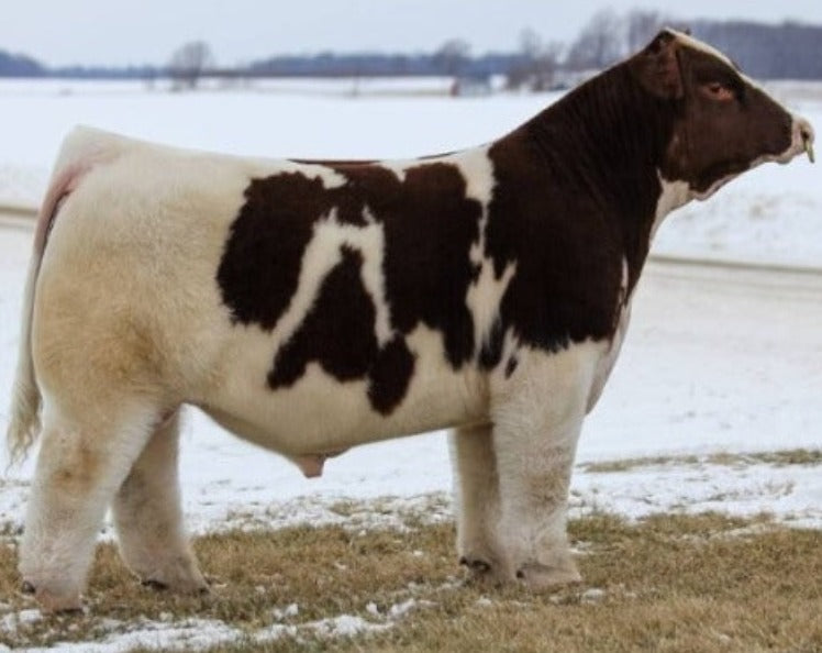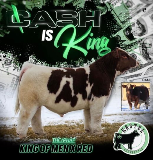 Cash is King is a full sib to upcoming and proven sire Jack of Hearts. The Donor dam "Red" to these colored up shorty appearing studs was a many time champion market heifer that gave the boys all they wanted! Monster footed, extra shaggy, cool marked, tons of belly, backed by consistent producing dam "Red", and most importantly puts his huge feet down with authority!