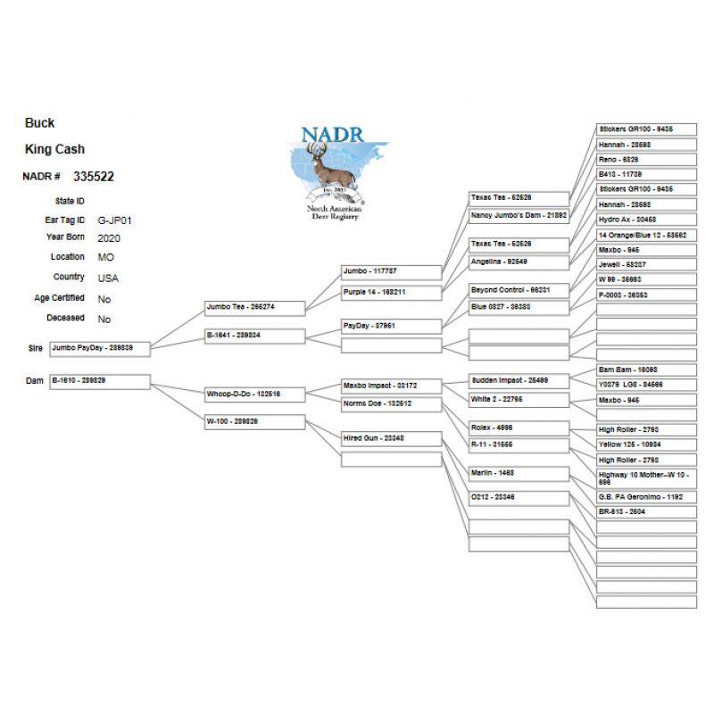 King Cash represents the "Next Generation". Jumbo Payday is the sire. To make Jumbo Payday we took our KS buck Jumbo Tea and bred him to a Payday doe. The results were Stunning! Check out this sire! Then we bred him to a Whoop-D-Do super doe. Whoop-D-Do was a star. He was Maxbo Impact over Rolexby10s womb-sister. STUDY THIS PEDIGREE! It is built to produce big, pretty, and early!!!